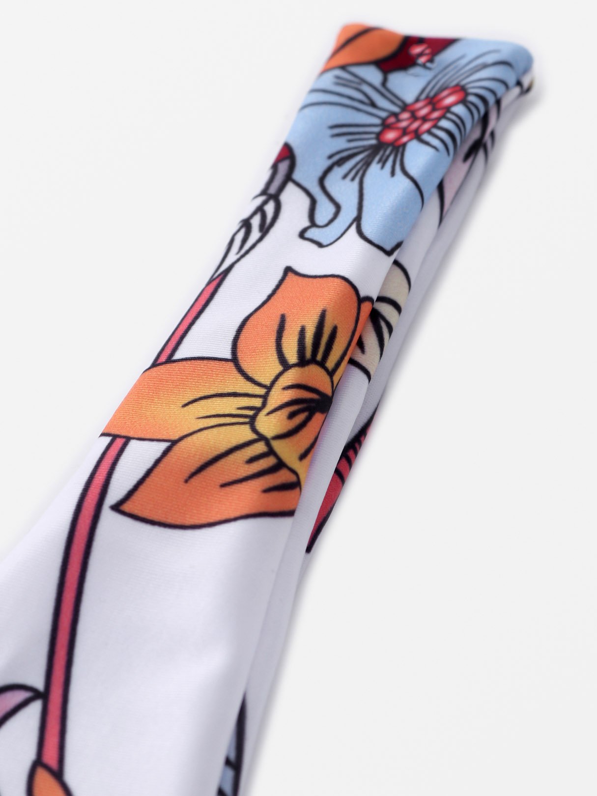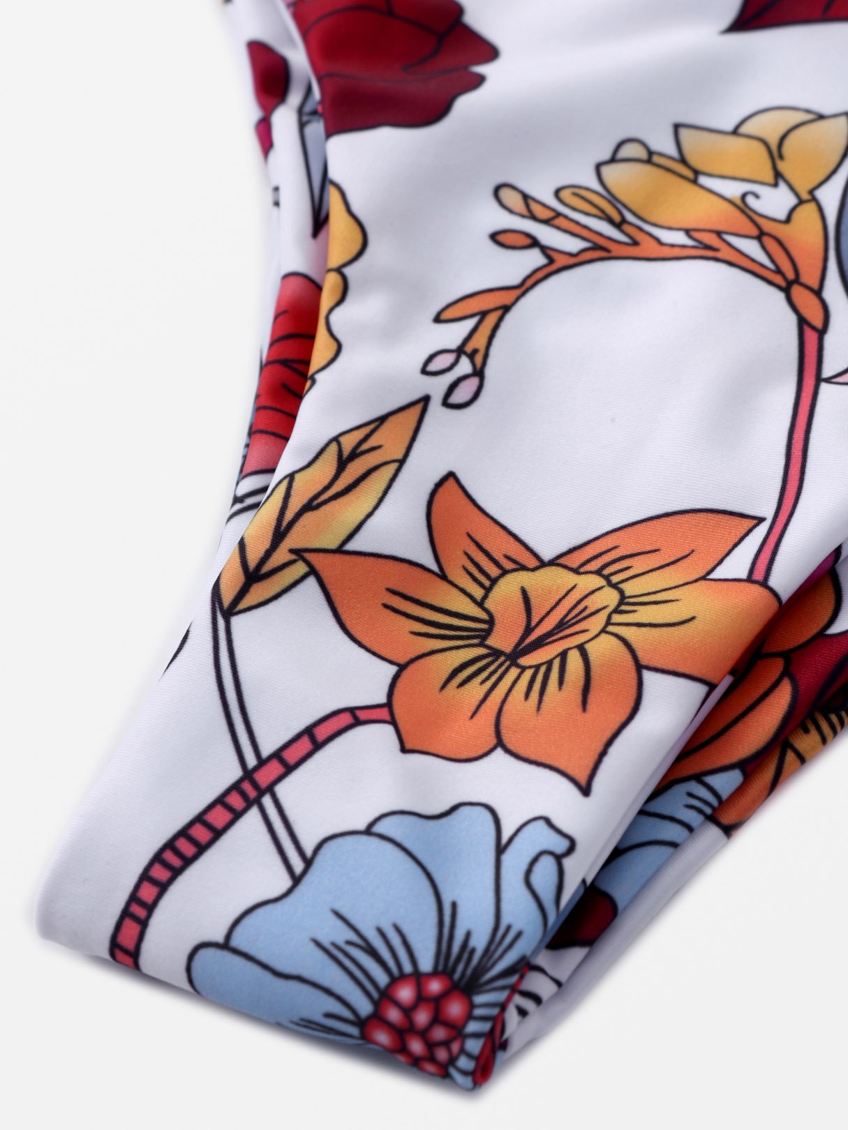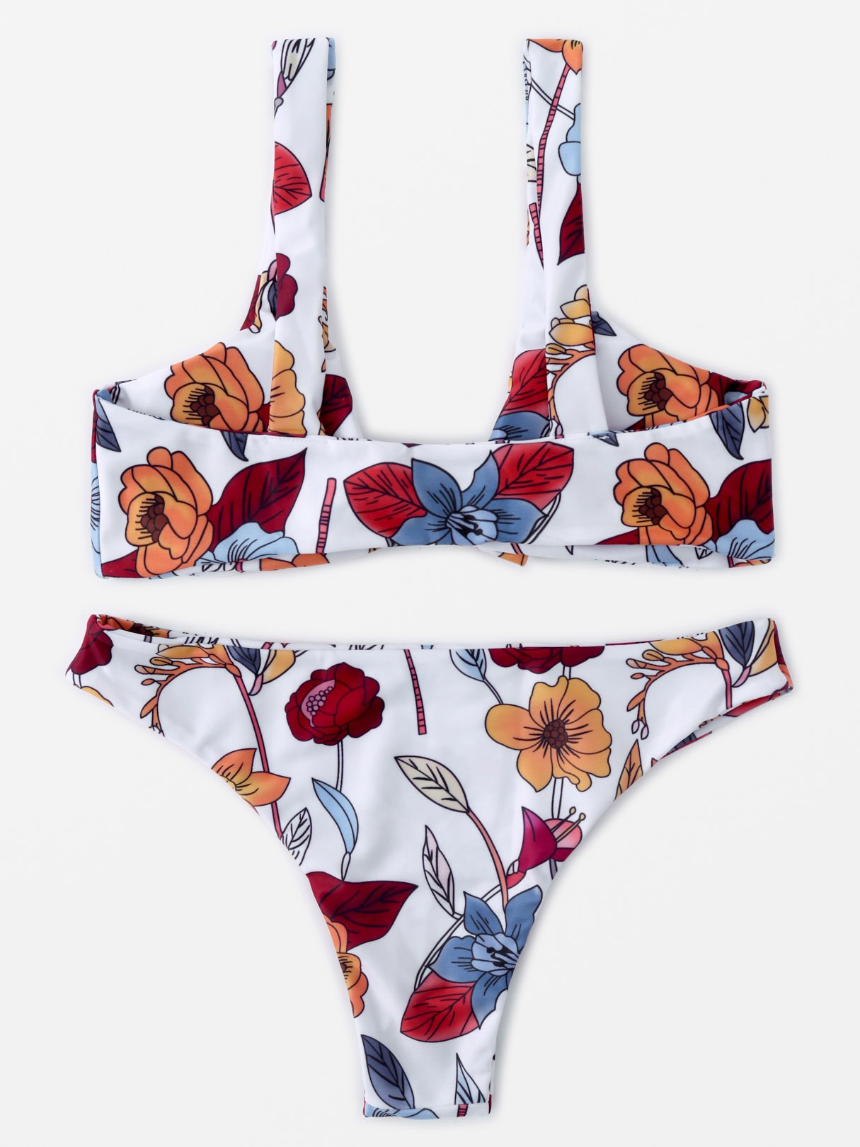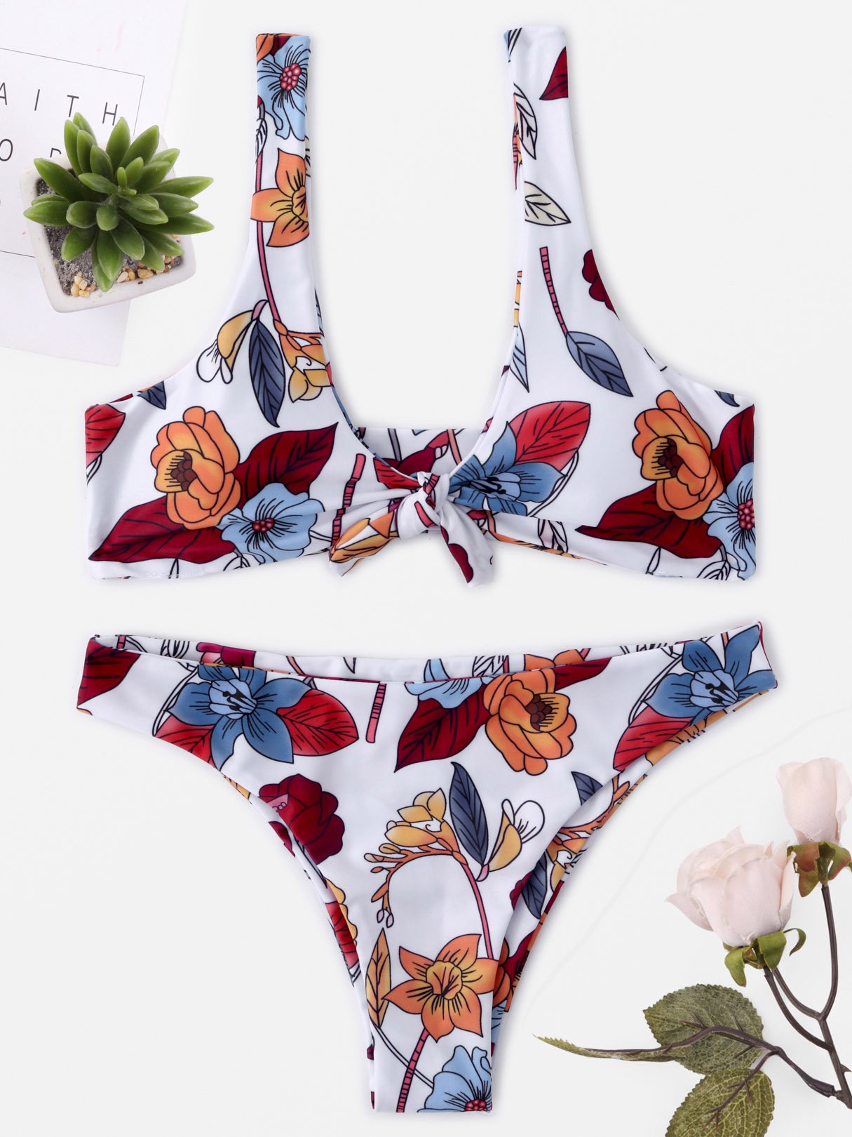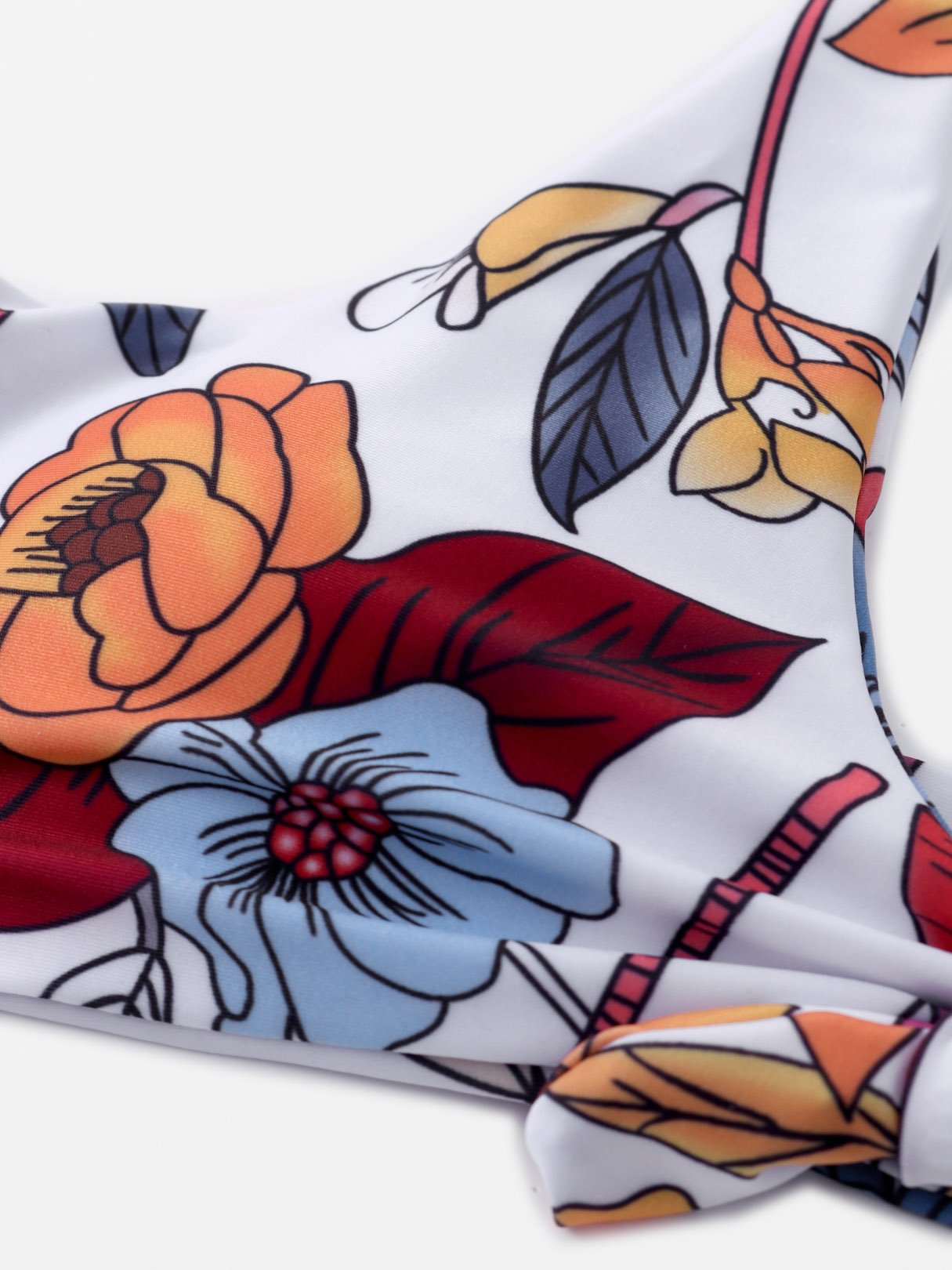 White Sleeveless Floral Print Self-Tie Bikini Set Swimwear