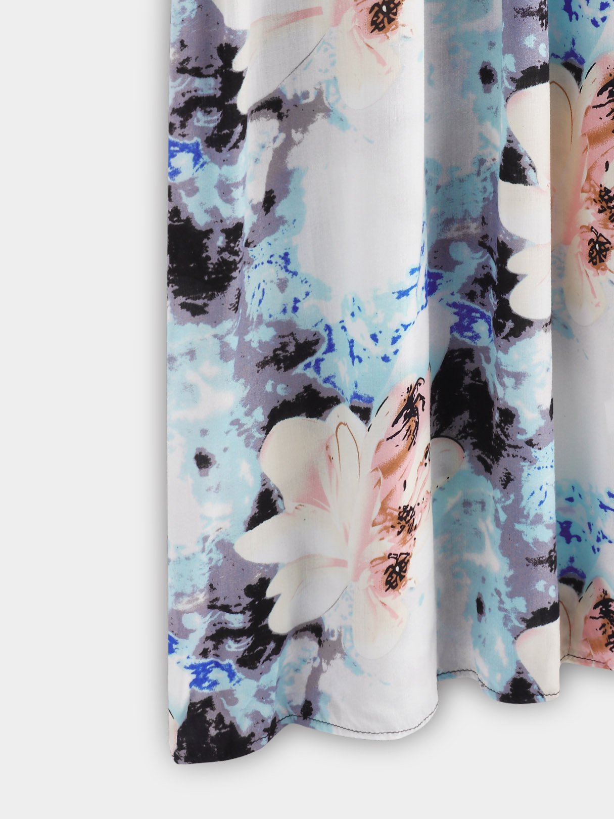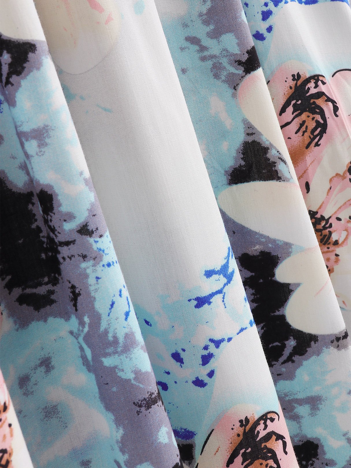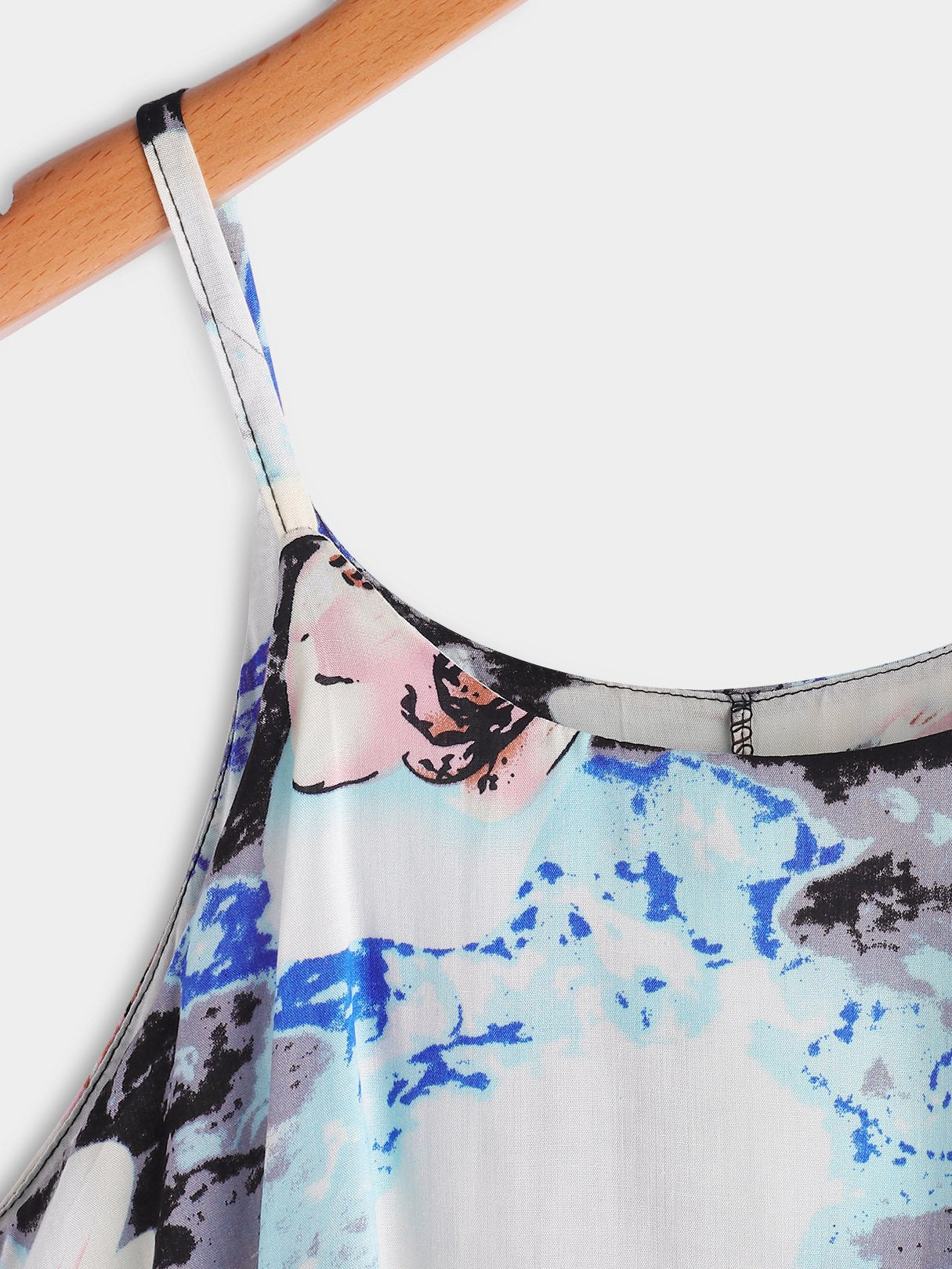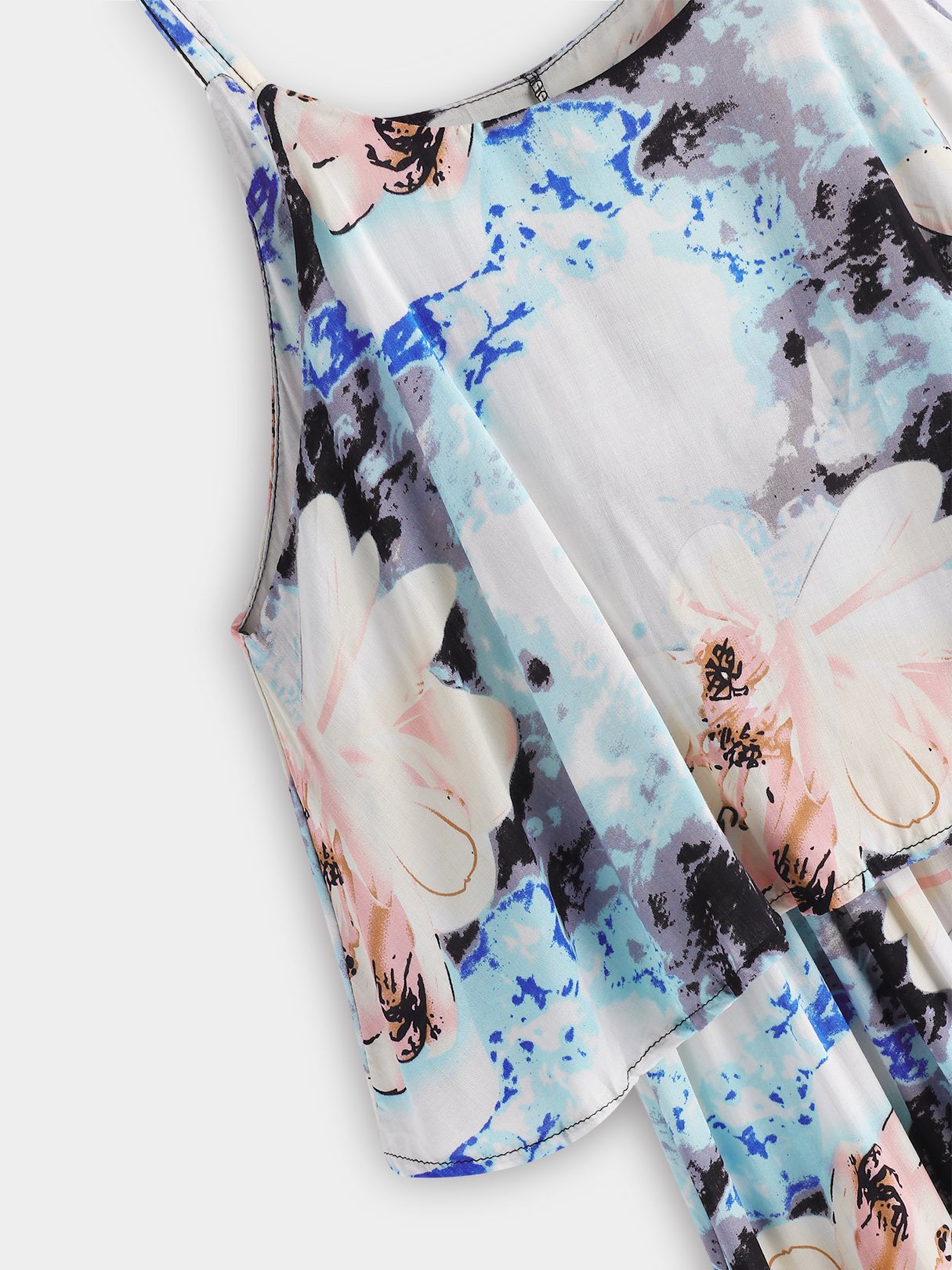 White Square Neck Sleeveless Floral Print Tiered Backless Ruffle Hem Dresses