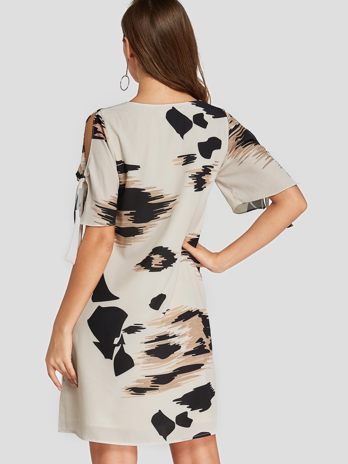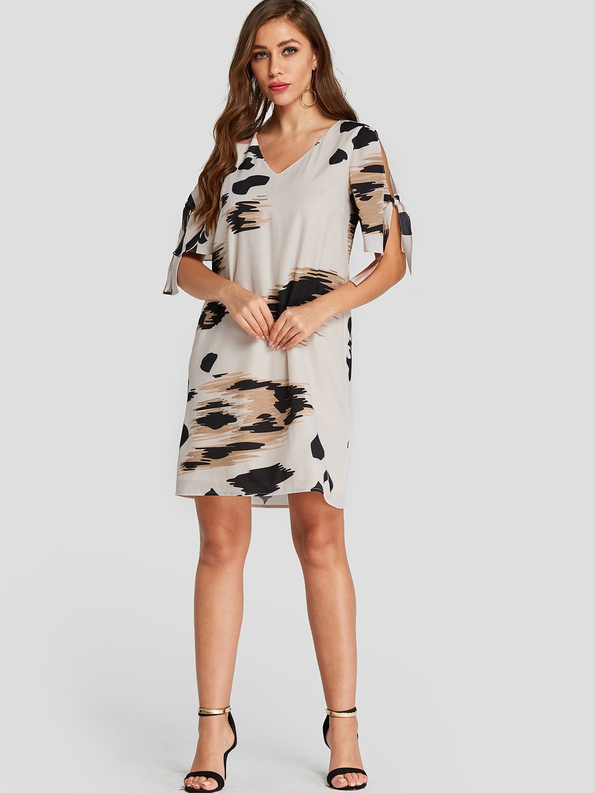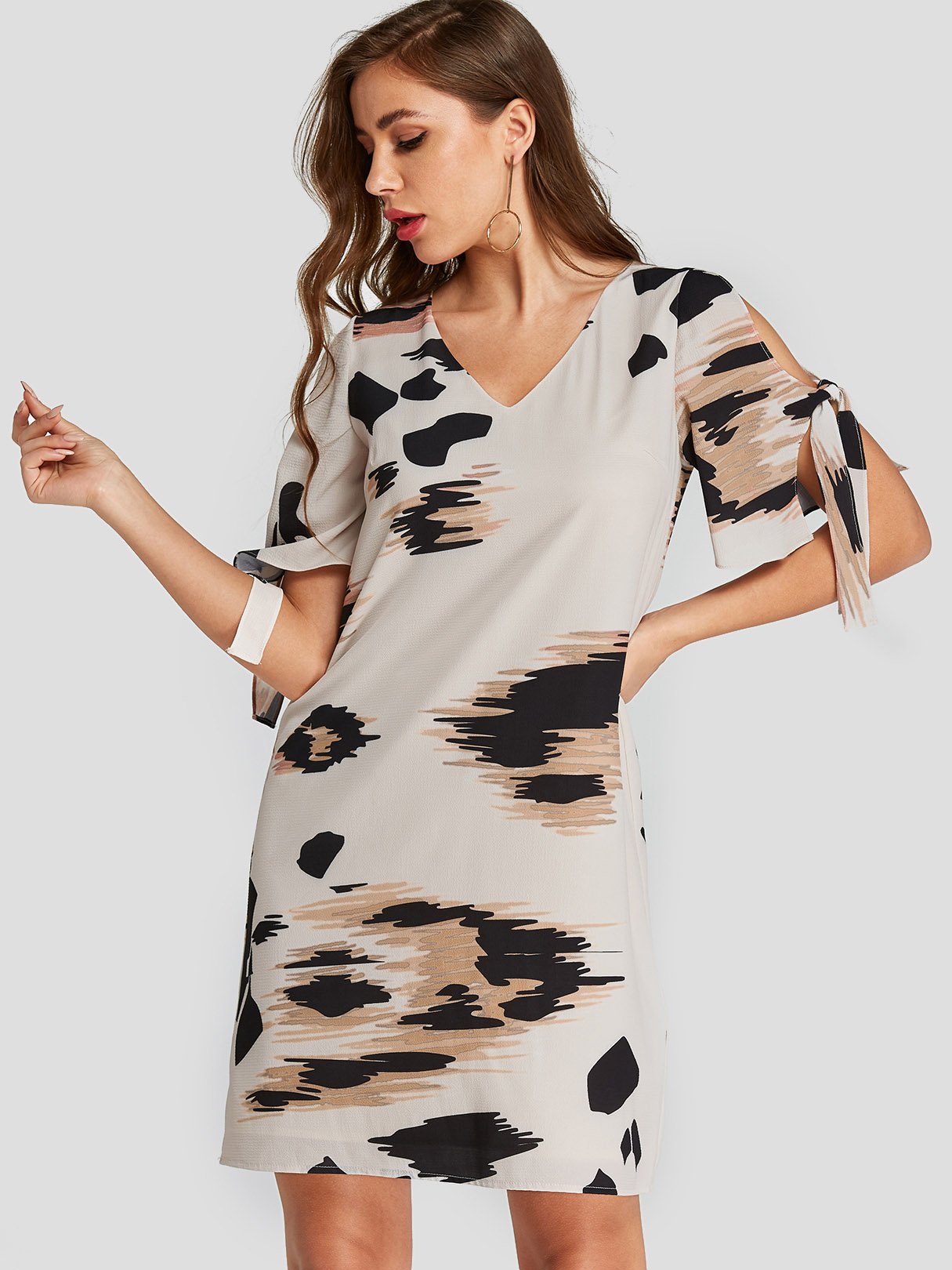 White V-Neck Short Sleeve Animal Dresses