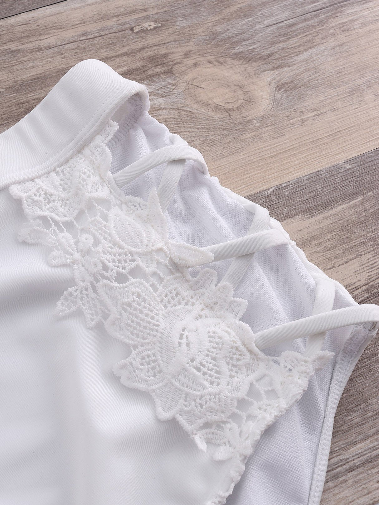 White V-Neck Sleeveless Backless Criss-Cross High-Waisted Bikini Set Swimwear