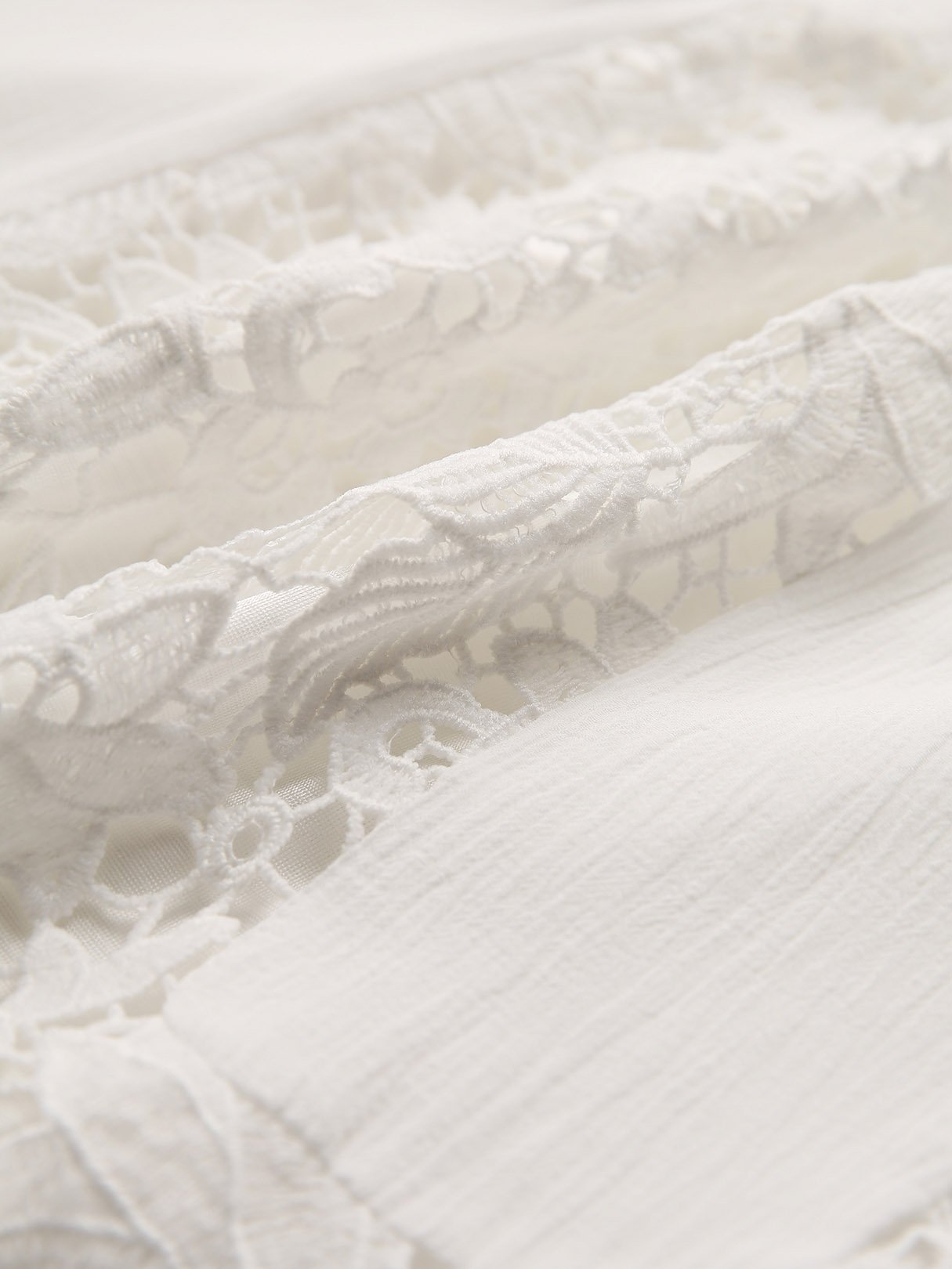 White V-Neck Sleeveless Lace Insert Mini Dresses - White / S is backordered and will ship as soon as it is back in stock.