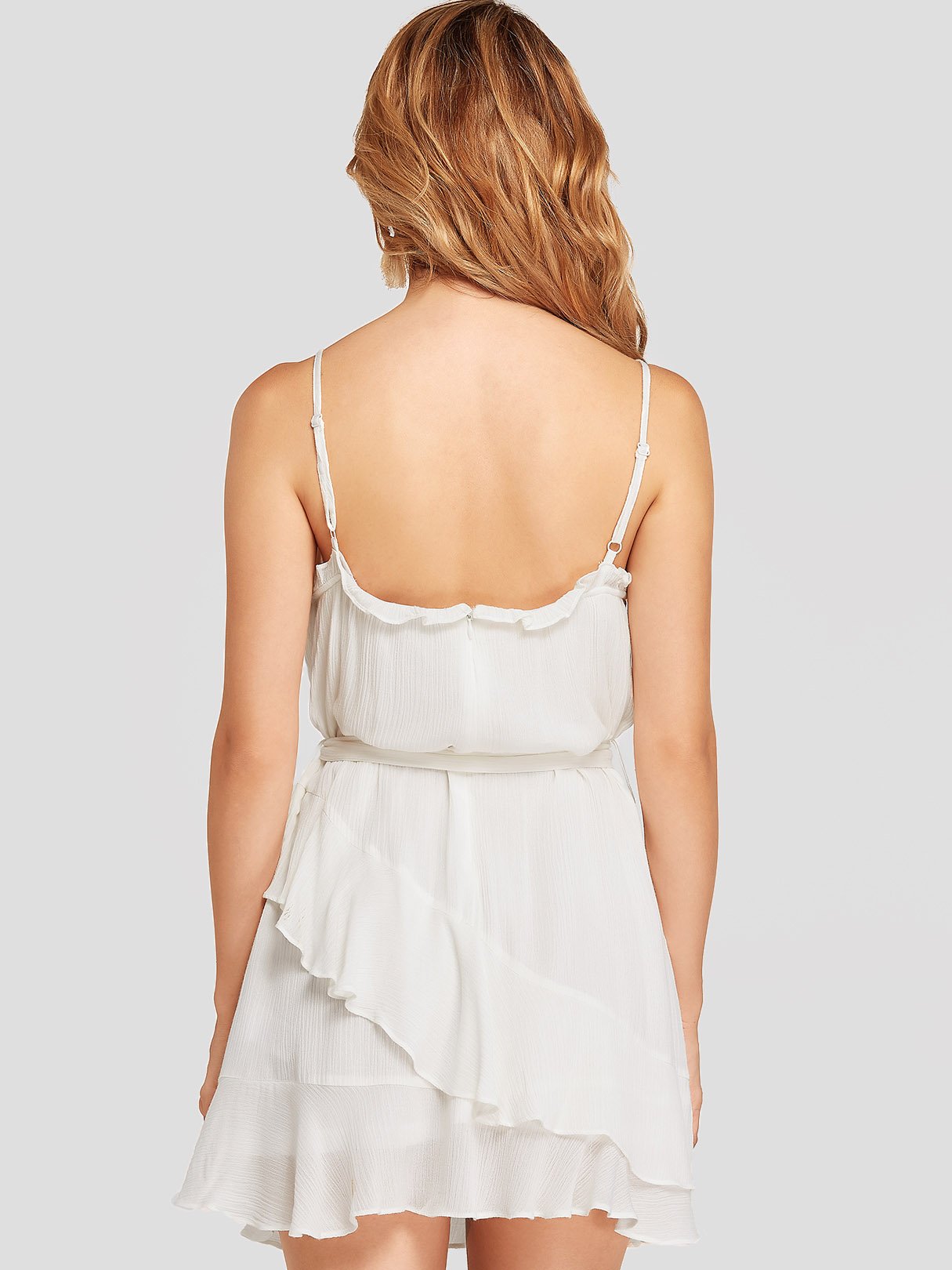 White V-Neck Sleeveless Plain Lace-Up Spaghetti Strap Slit Hem Dresses