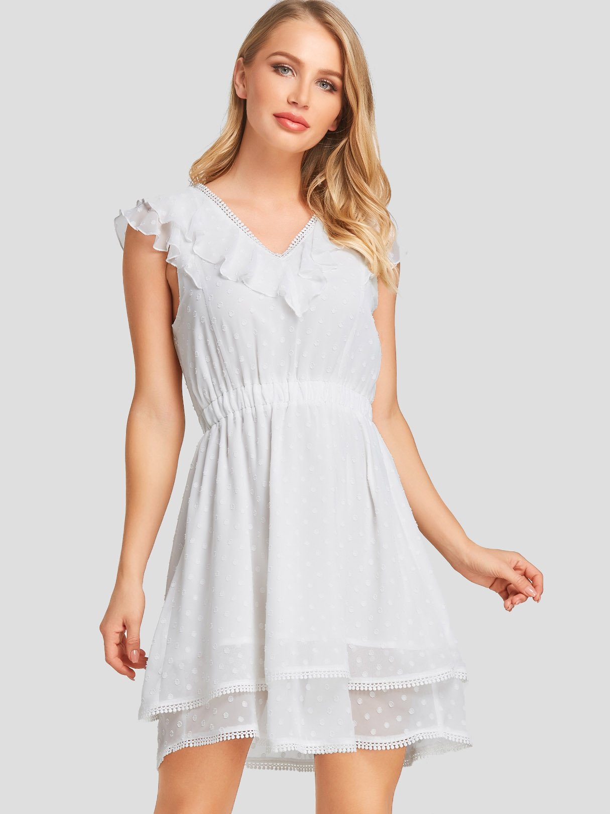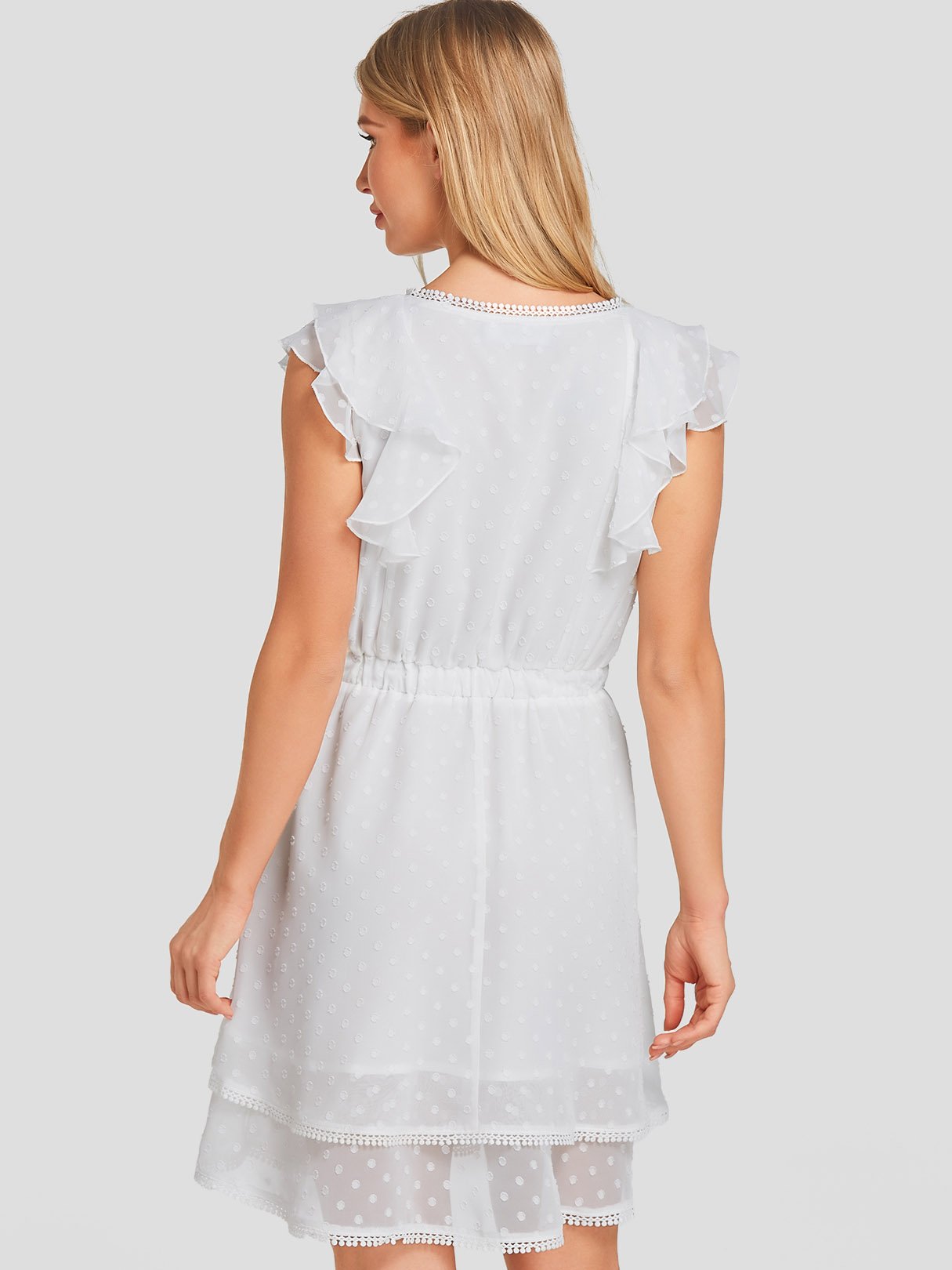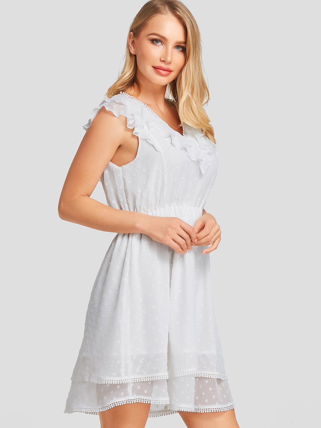 White V-Neck Sleeveless Plain Tassel Hem Dresses
