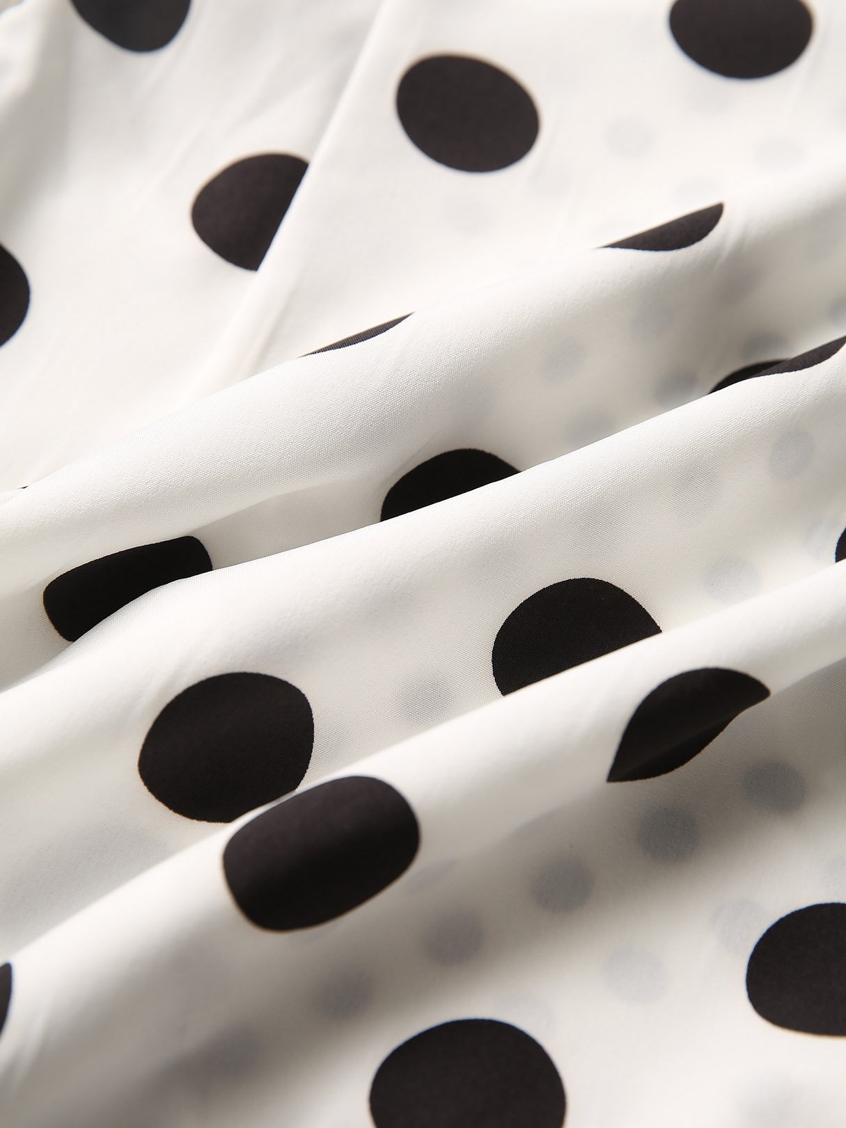 White V-Neck Sleeveless Polka Dot Backless Self-Tie Wrap Flounced Hem Dresses