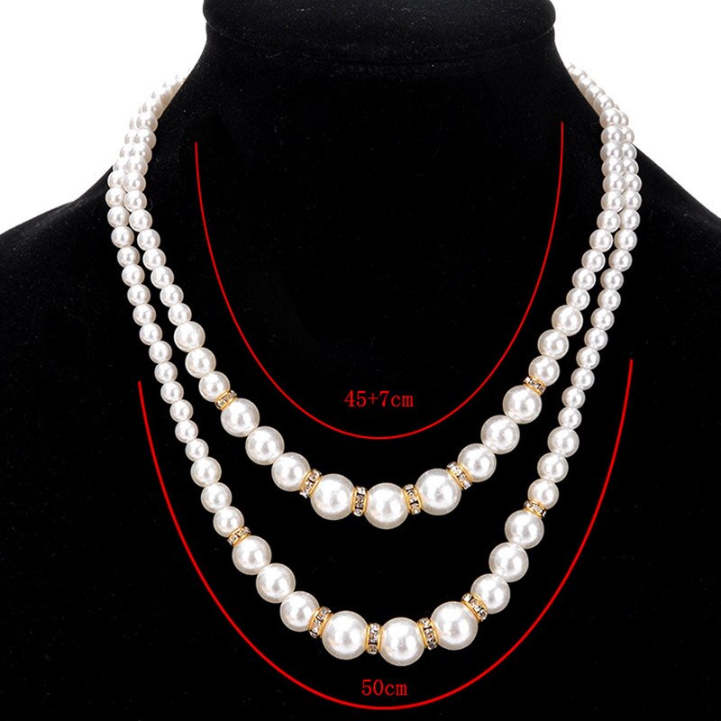 Women Retro Faux Pearl Necklace Lady Luxury Dual Layer Jewelry