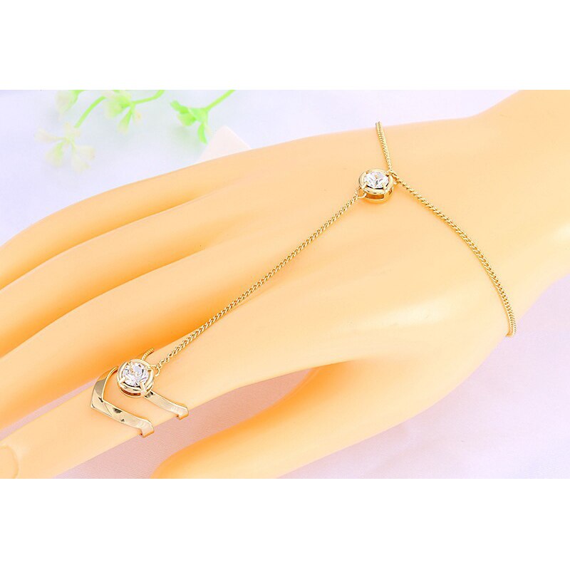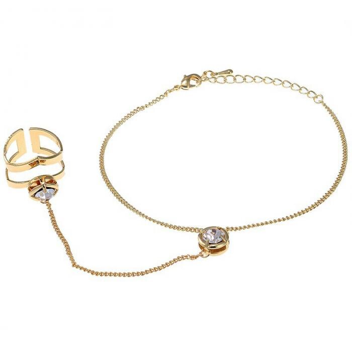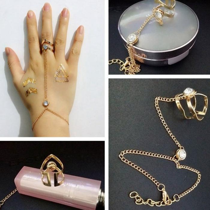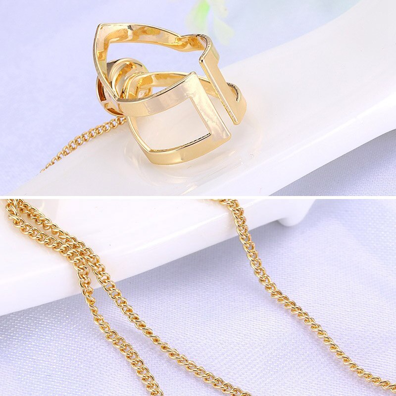 Women Ring Hand Chain Punk Style Jewelry Open Cuff Geometric Hollow Ring