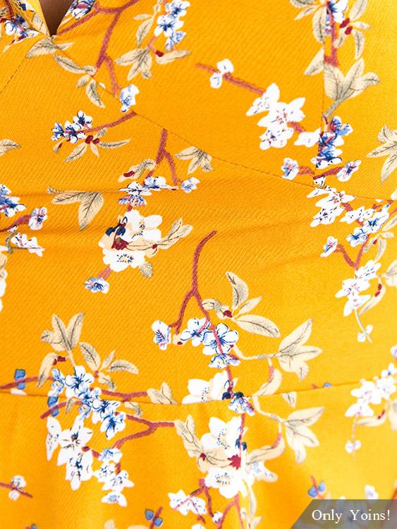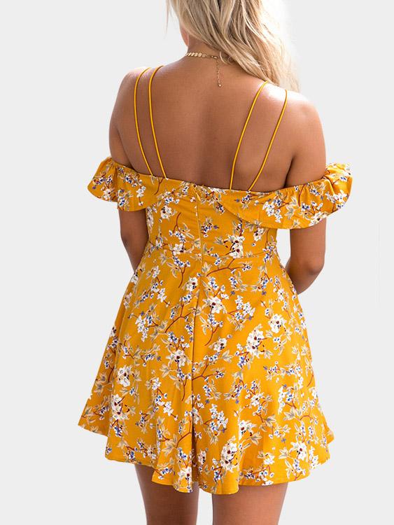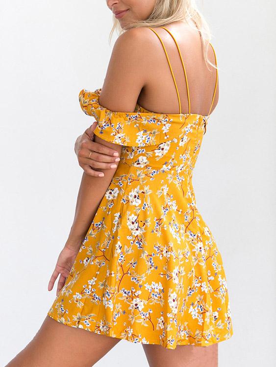 Yellow Cold Shoulder Short Sleeve Floral Print Zip Back Backless Dresses - Yellow / S is backordered and will ship as soon as it is back in stock.
