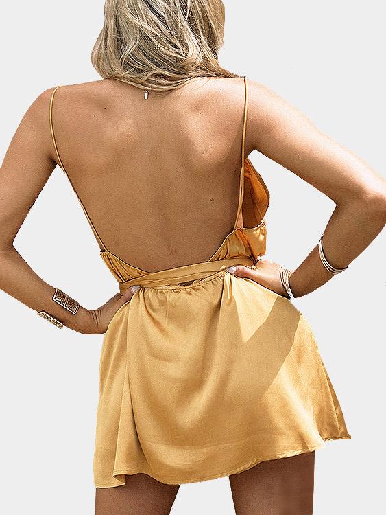 Yellow Deep V Neck Sleeveless Crossed Front Sexy Dress - Yellow / S is backordered and will ship as soon as it is back in stock.