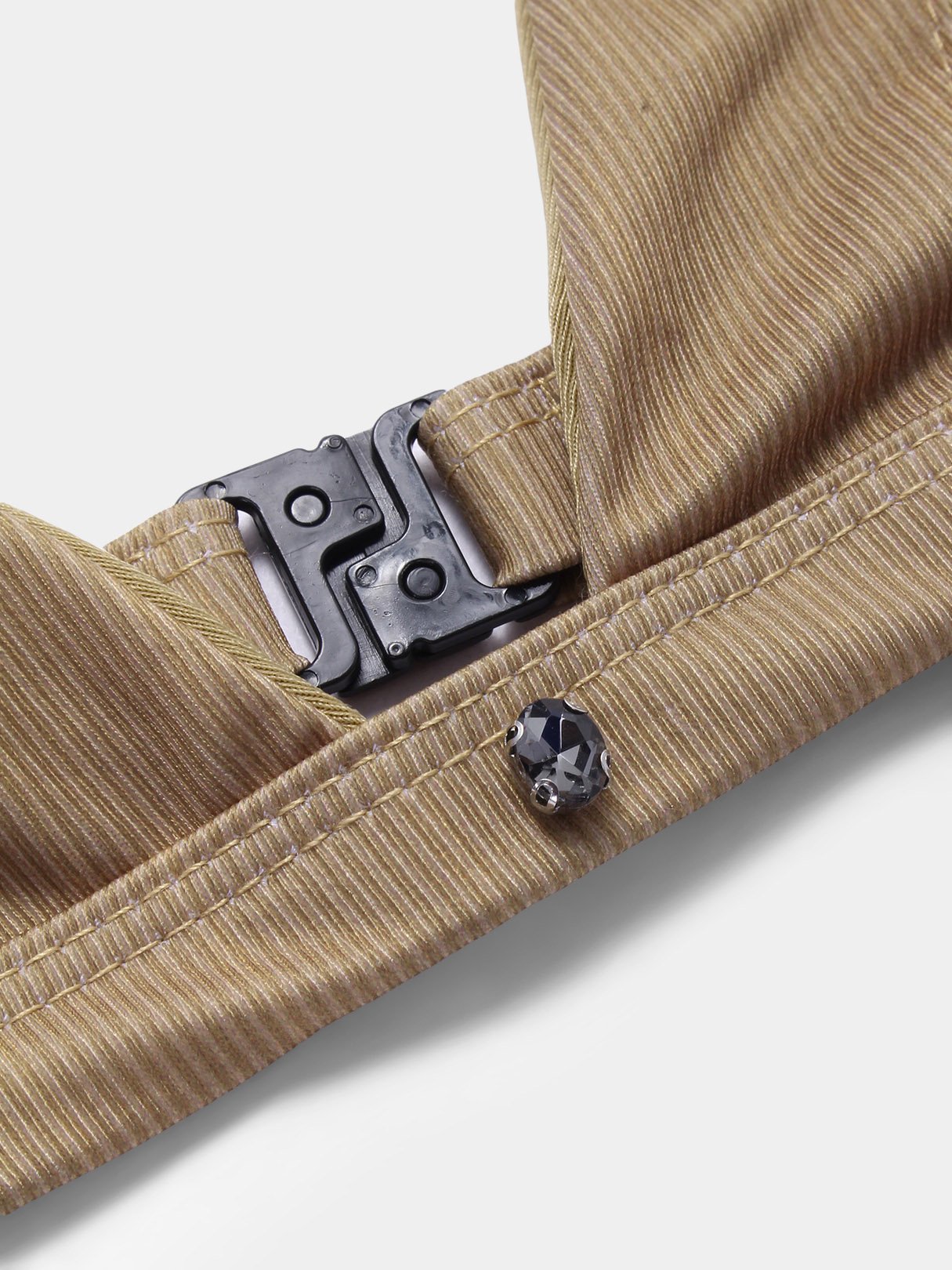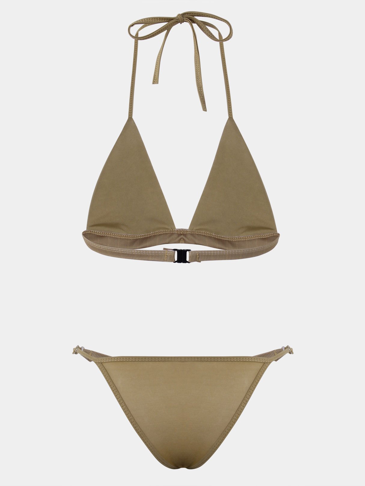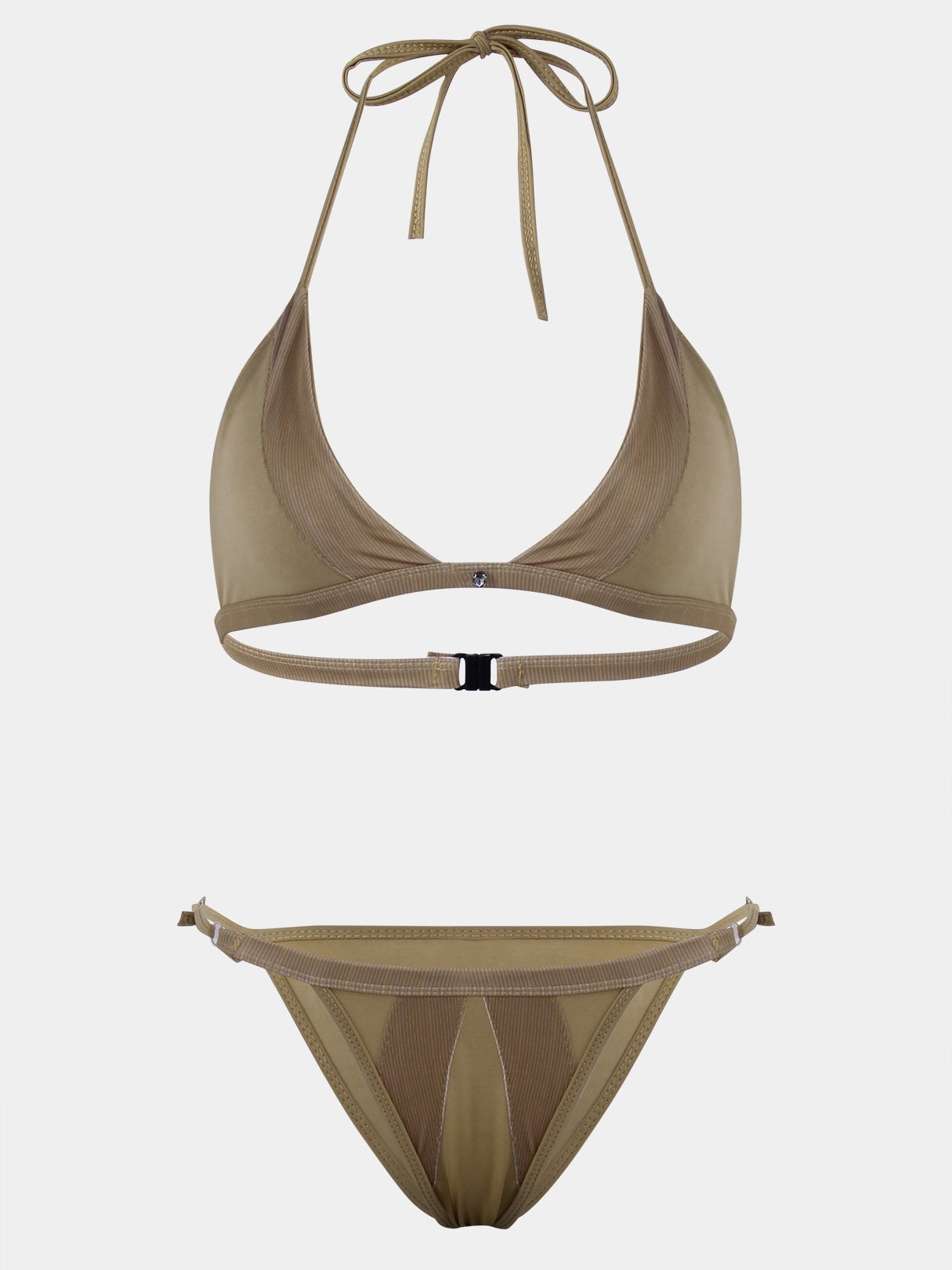 Yellow Halter V-Neck Sleeveless Plain Backless Lace-Up Spaghetti Strap Bikinis