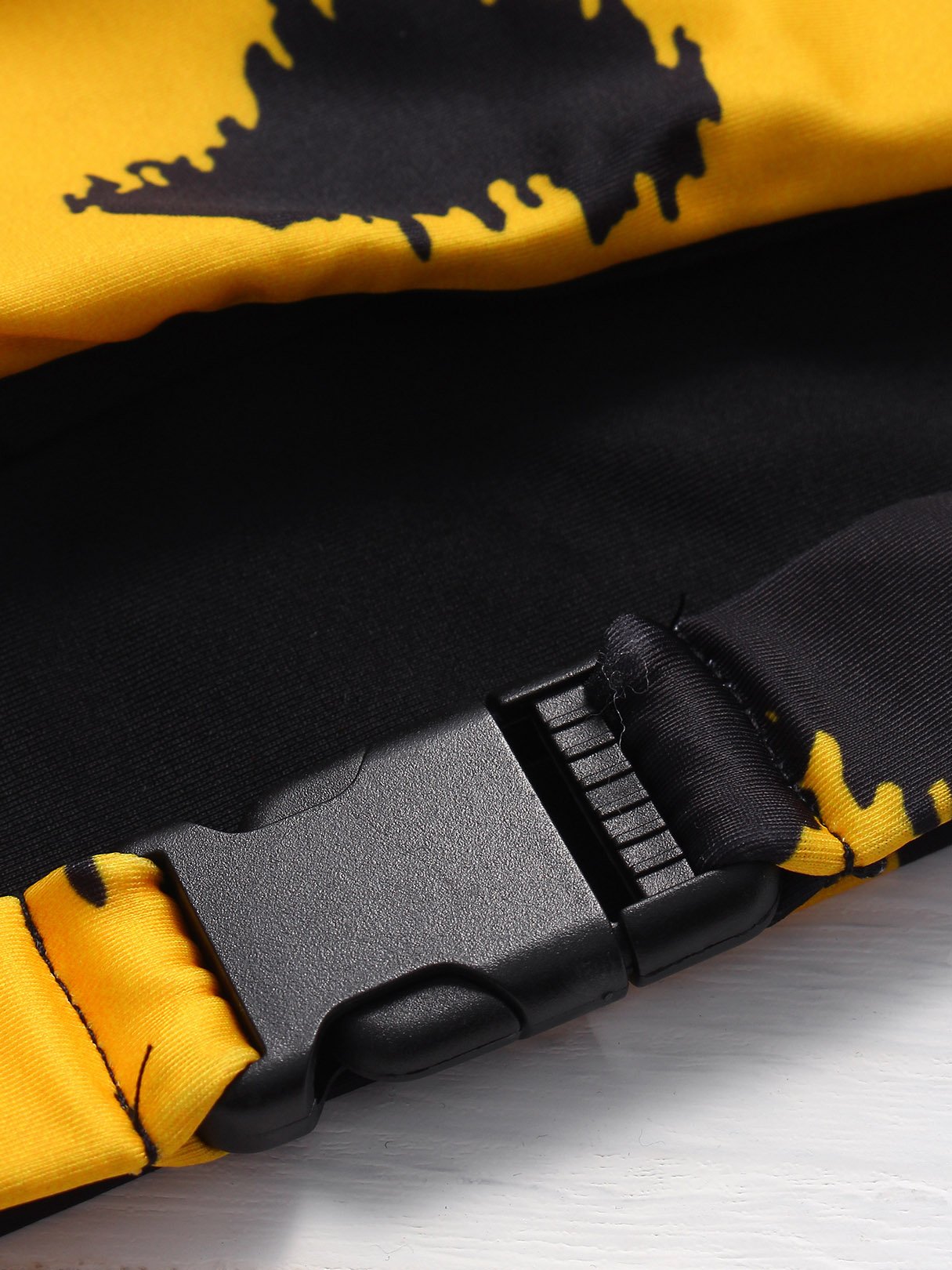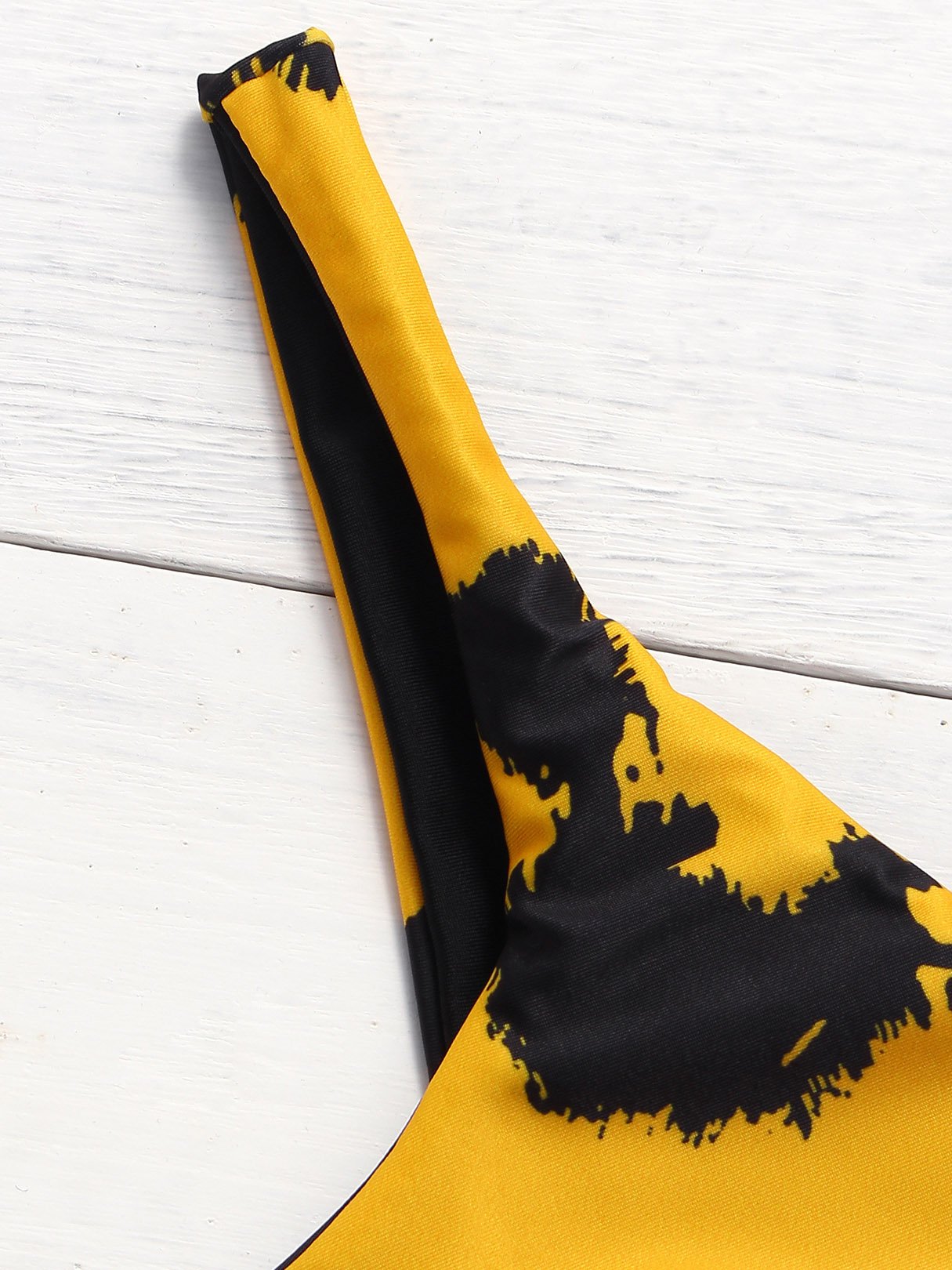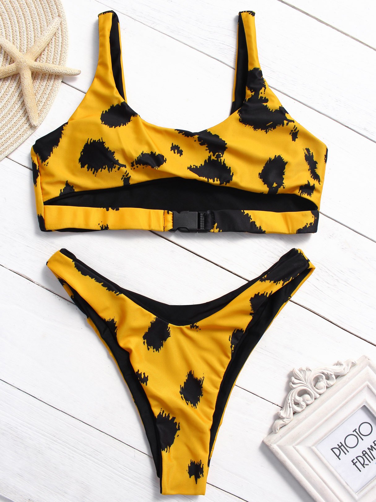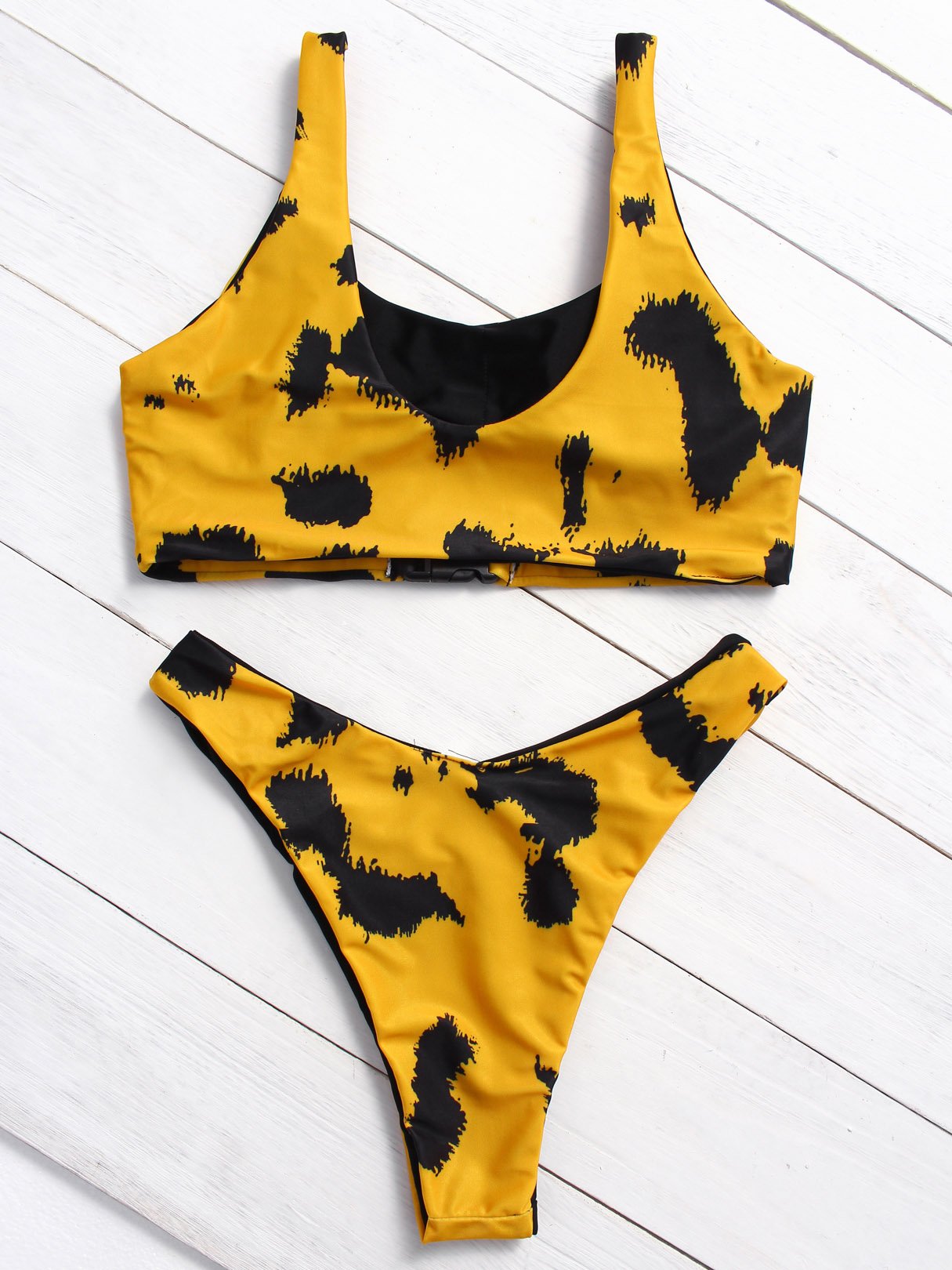 Yellow Scoop Neck Sleeveless Leopard Cut Out High Waist 2 Piece Bikinis