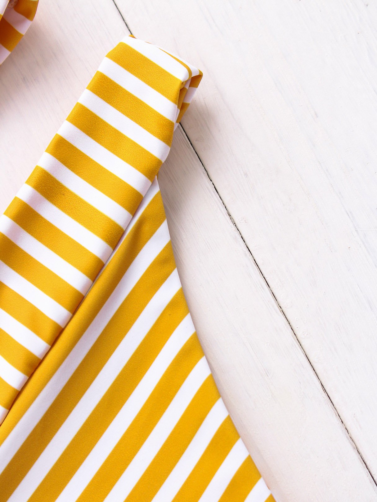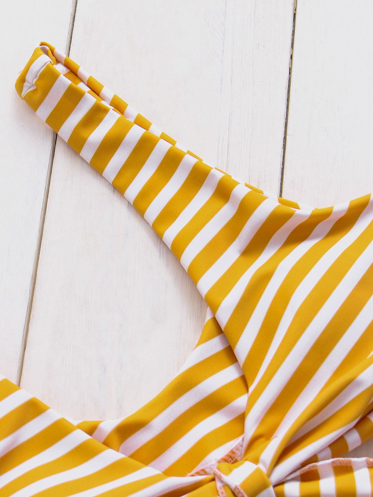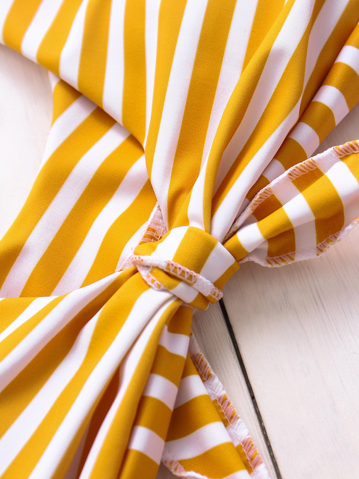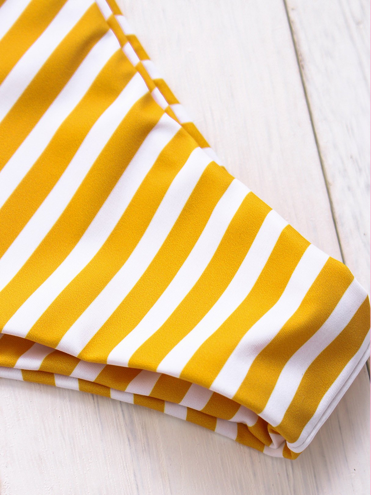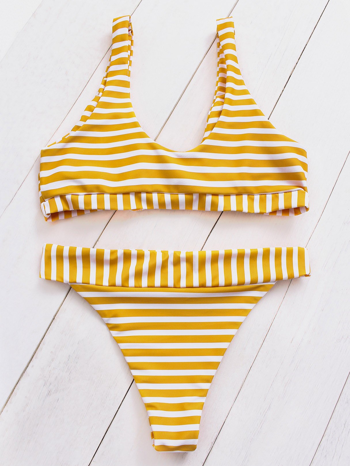 Yellow Scoop Neck Sleeveless Stripe Bikinis